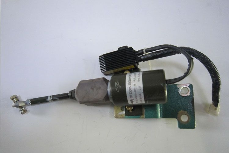 【宝贝参数】名称:断油电磁阀型号:M3015-1115100规格:DC24V行程:35.5mm适用:广西玉柴24V用途:柴油机的限速原理是依靠断油电磁阀线圈的通电和断电来现喷油和断油的,其线圈绕组包括相互并联的一强电流牵引线圈(吸拉线圈)和一弱电流保持线圈(保位线圈),一柱塞位于线圈芯内且其头部由一复位弹簧,并串联在所述的牵引线圈回路中。当车速达到限制车速时,铁芯到达顶端使得吸拉线圈被短路,阀芯的位置由保持线圈保持,阀芯位置被控制,油量得到控制,使得车速不再增加。柴油机的电门开关作为保持线圈的电源开关,从起动机时来的电源作为牵引线圈的工作电源。